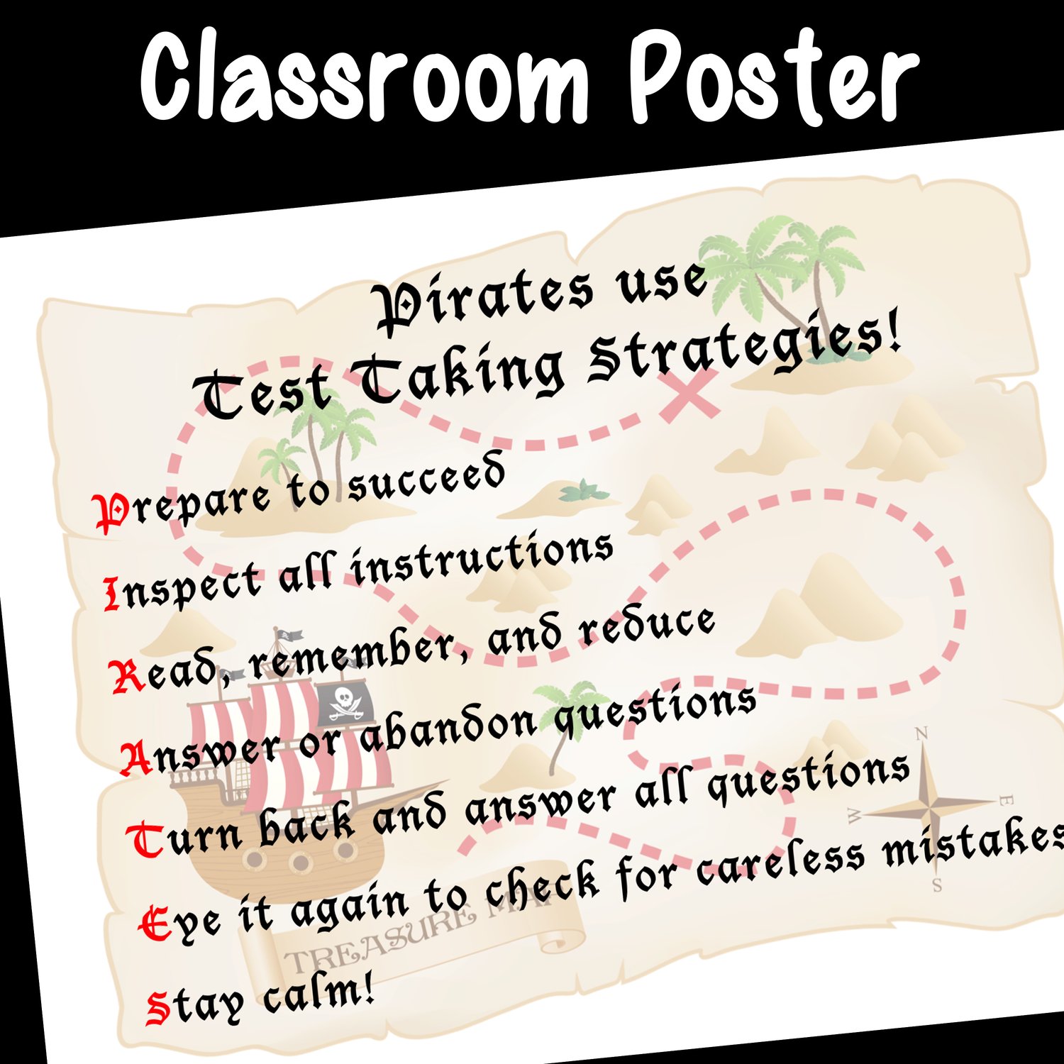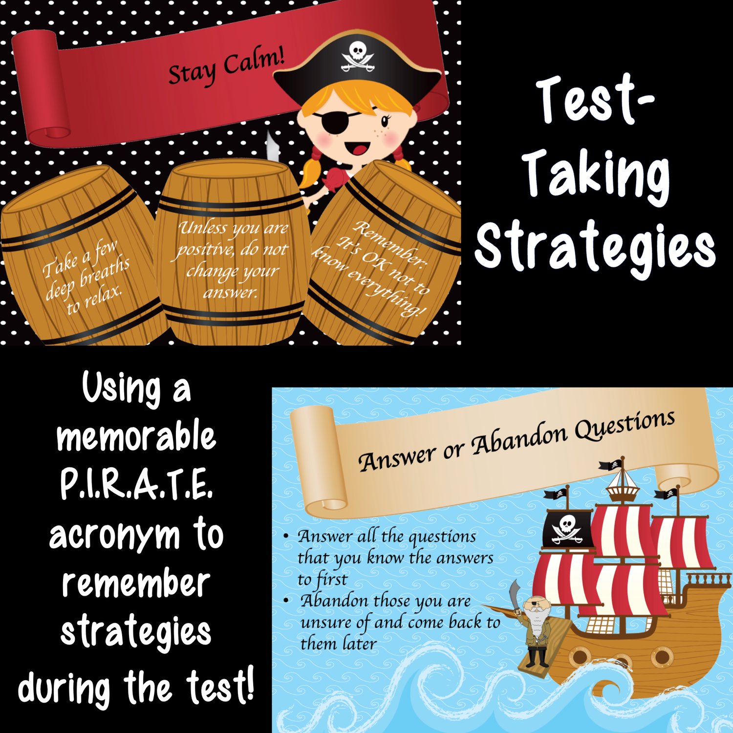 Ahoy there Mateys! Avast all ye pirates embarking on the standardized testing seas! Join our crew for a voyage through Test Taking Strategies Lesson & Game - Standardized Testing Prep Motivation Tips, where landlubbers and seasoned pirates alike will discover the P.I.R.A.T.E.S. approach to mastering exams!
