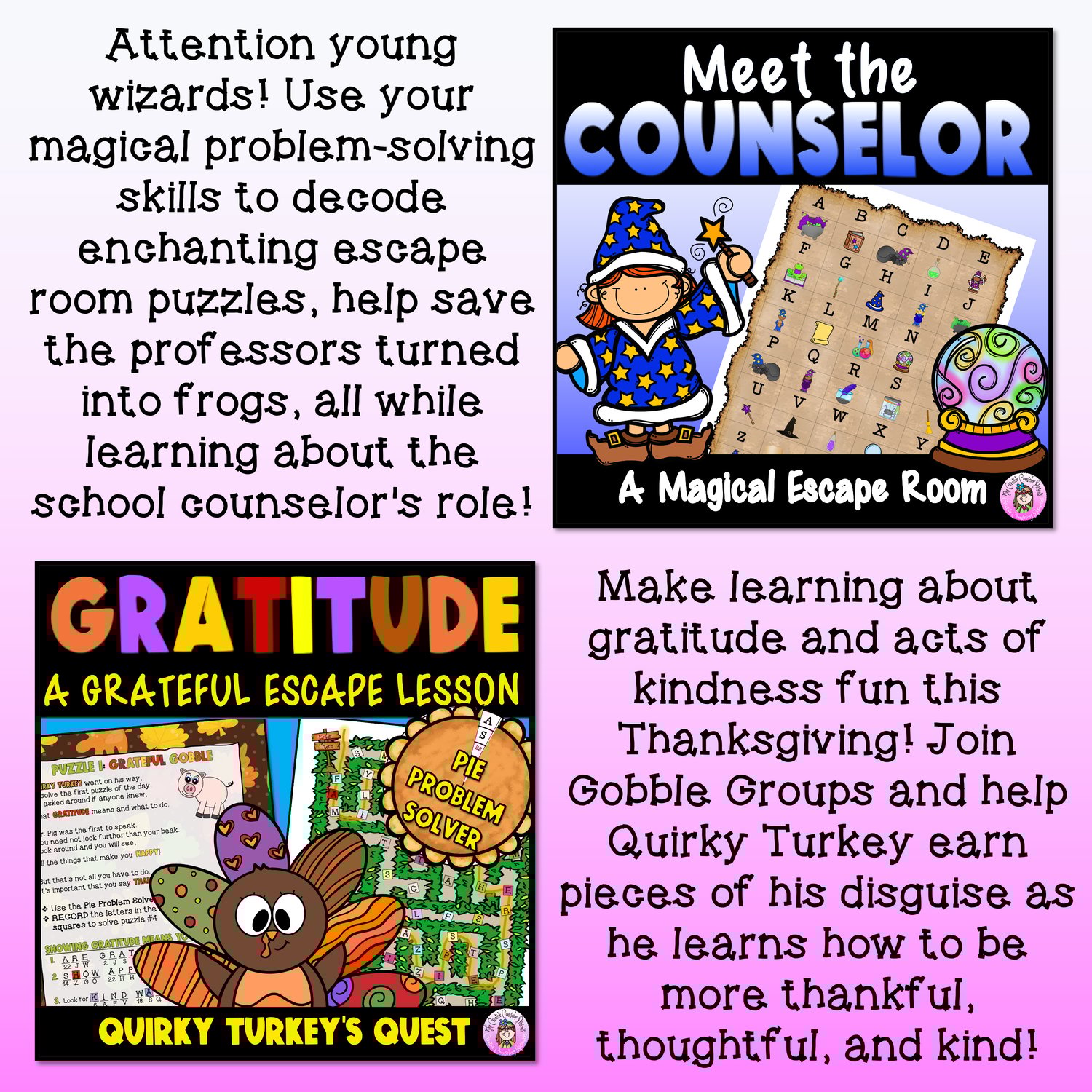 - Magical Meet the Counselor: Students explore the role of the school counselor in a magical world, solving puzzles to save wizards.