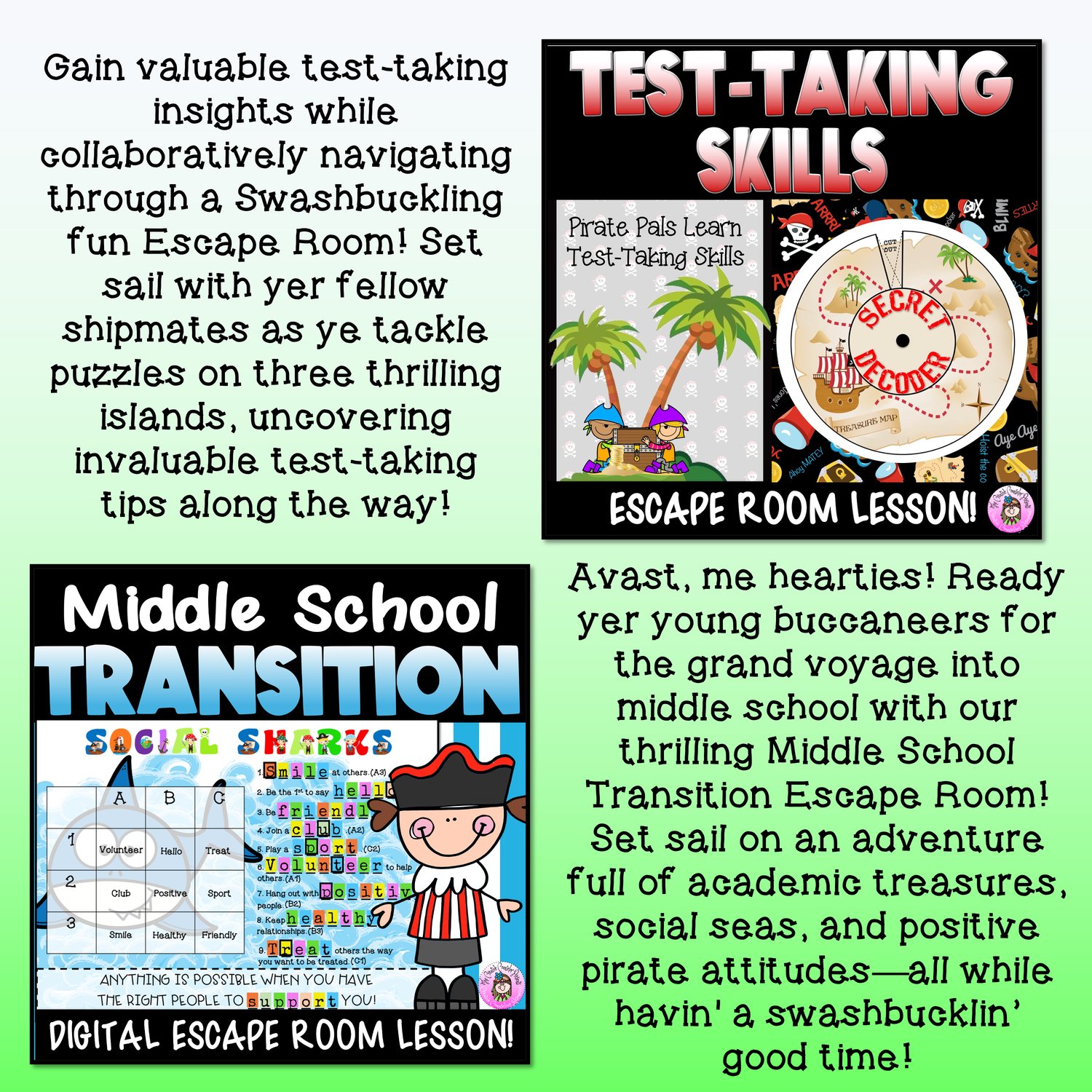 - Middle School Transition Adventure: Prepare students for their next big step with an interactive transition-themed escape room.