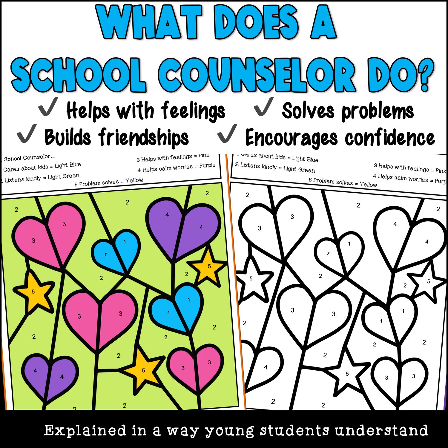 - 5 printable Color by Code Meet the School Counselor Worksheets