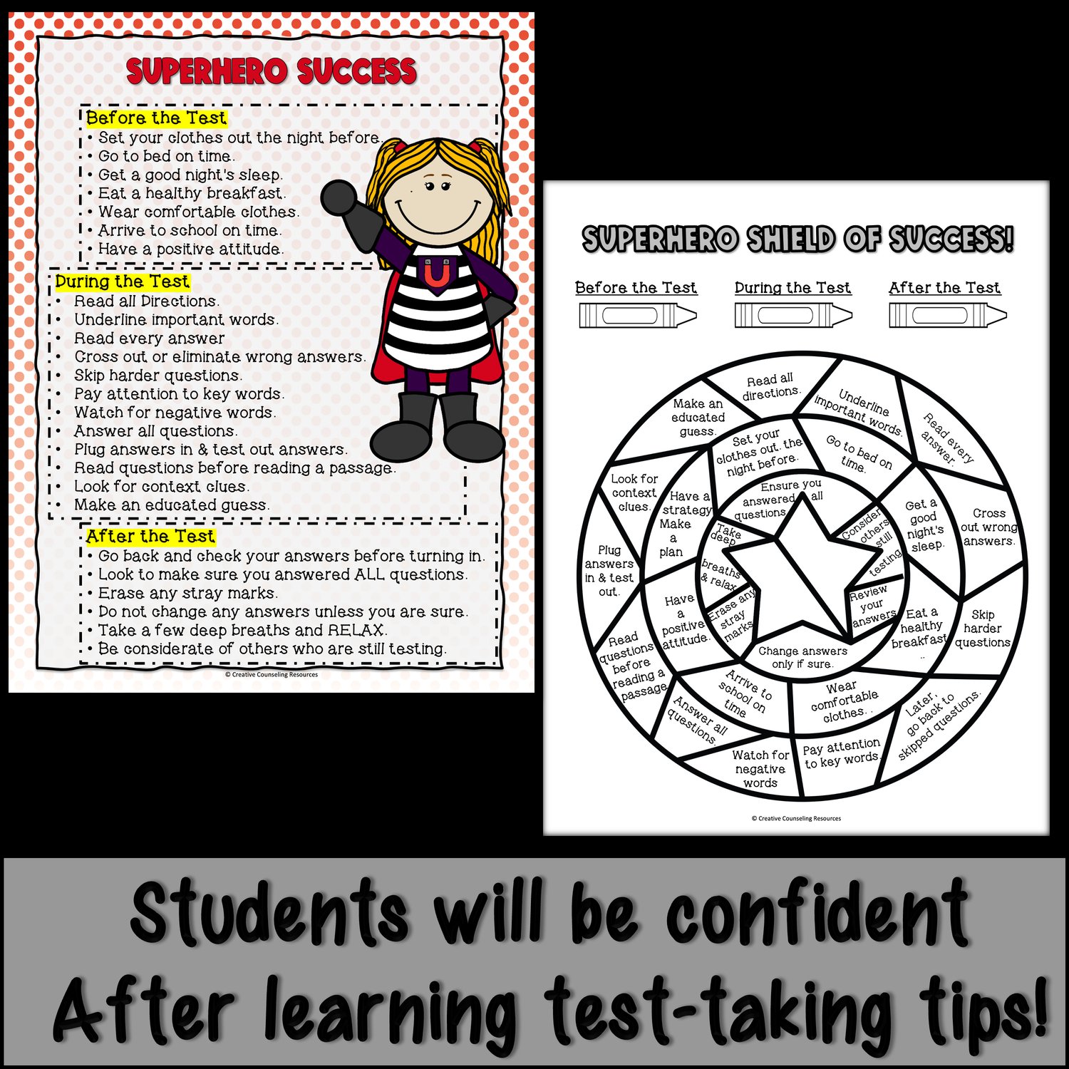 Next, venture into the Arena of Performance Power, where your skills will be put to the test. Use the Code Cracker to decode the Superheroes' Suggestions and fill in the blanks with the missing words, unlocking the secrets of what to do DURING the test. Earn the Shield of Performance Power, and harness the energy to shine brightly in the face of adversity.