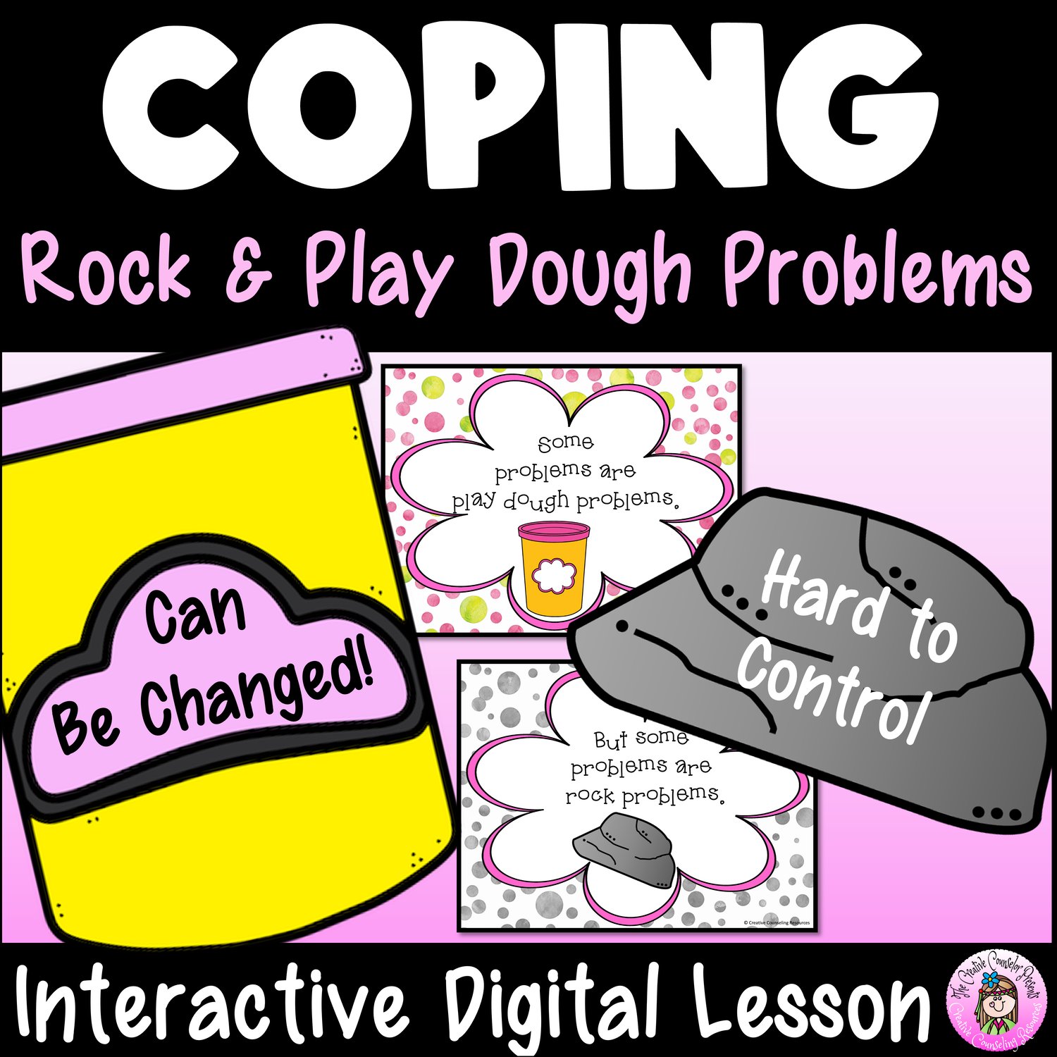 Discover a fun and interactive Coping Strategies lesson that helps students identify and manage two types of problems - play dough and rock problems. With a small tub of play dough and a rock, or follow our easy no-cook recipe, and start practicing with our interactive, Google Slides, self-directed lesson.