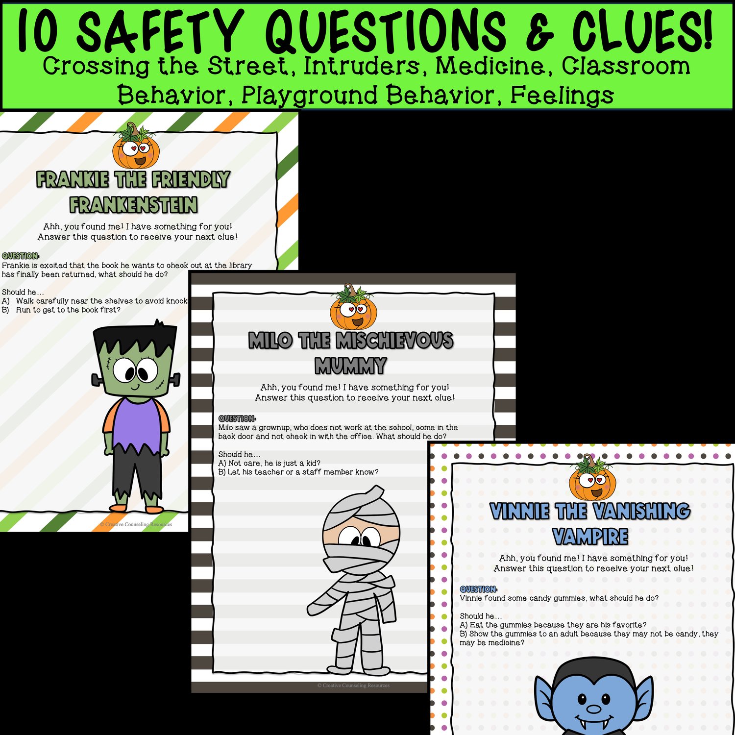 - Fun Halloween theme, so that students enjoy the lesson while reinforcing safe choices.