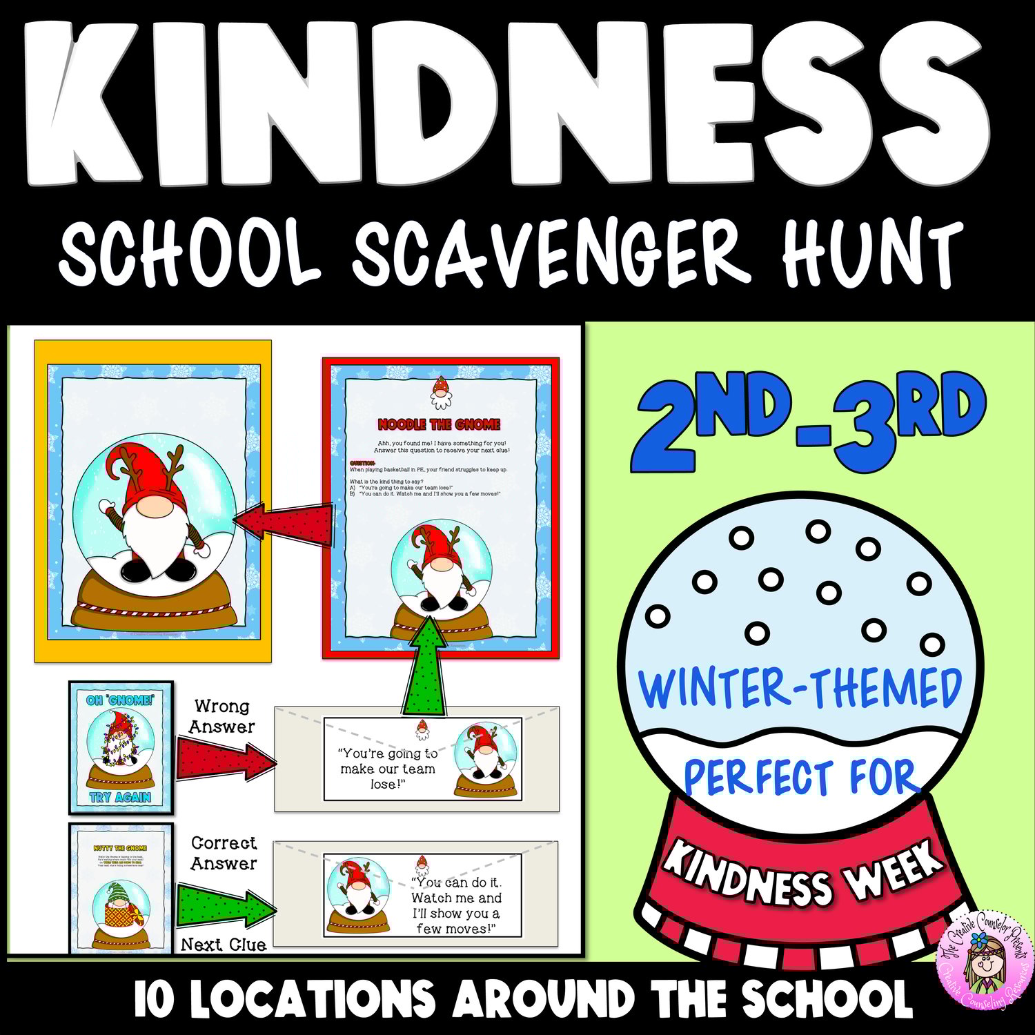 Looking for a winter-themed kindness scavenger hunt to teach kindness, empathy & respect? This Christmas Gnome Kindness Quest is best as this holiday scavenger hunt is filled with engaging clues and scenarios for 2nd - 3rd graders that promote kindness, respect, and social emotional learning (SEL).
