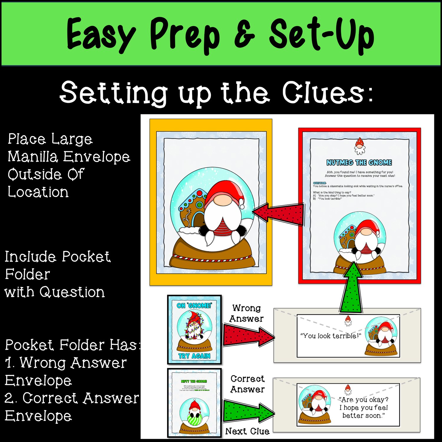 Note: Prep work includes printing, cutting, and assembling the clue packets, but this one-time setup allows for years of engaging, impactful use!