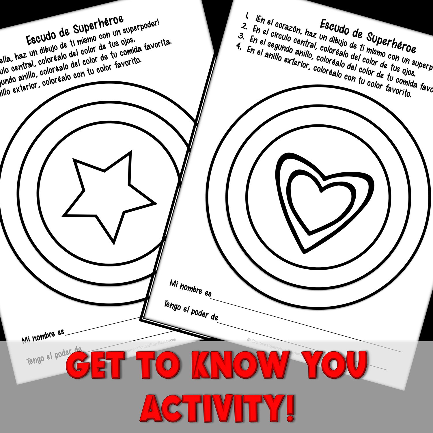 3. Superhero Shield Activity (SPANISH & ENGLISH, 4 pages)