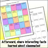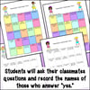 In this activity, students will interact with their peers by asking questions and recording the names of those who answer "yes." To keep it fair and engaging, some rules you may want to implement: