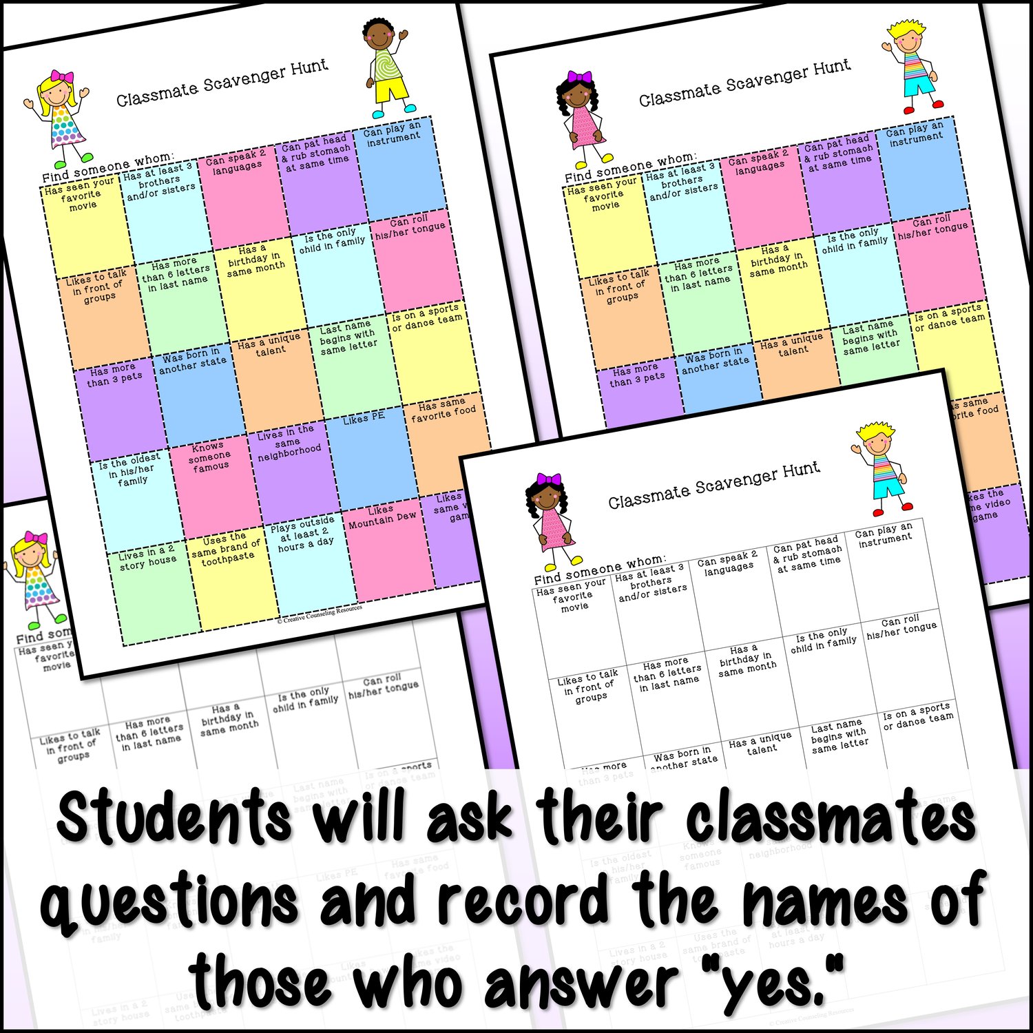 Back to School Scavenger Hunt Get to Know Your Classmates Scavenger Hunt Game