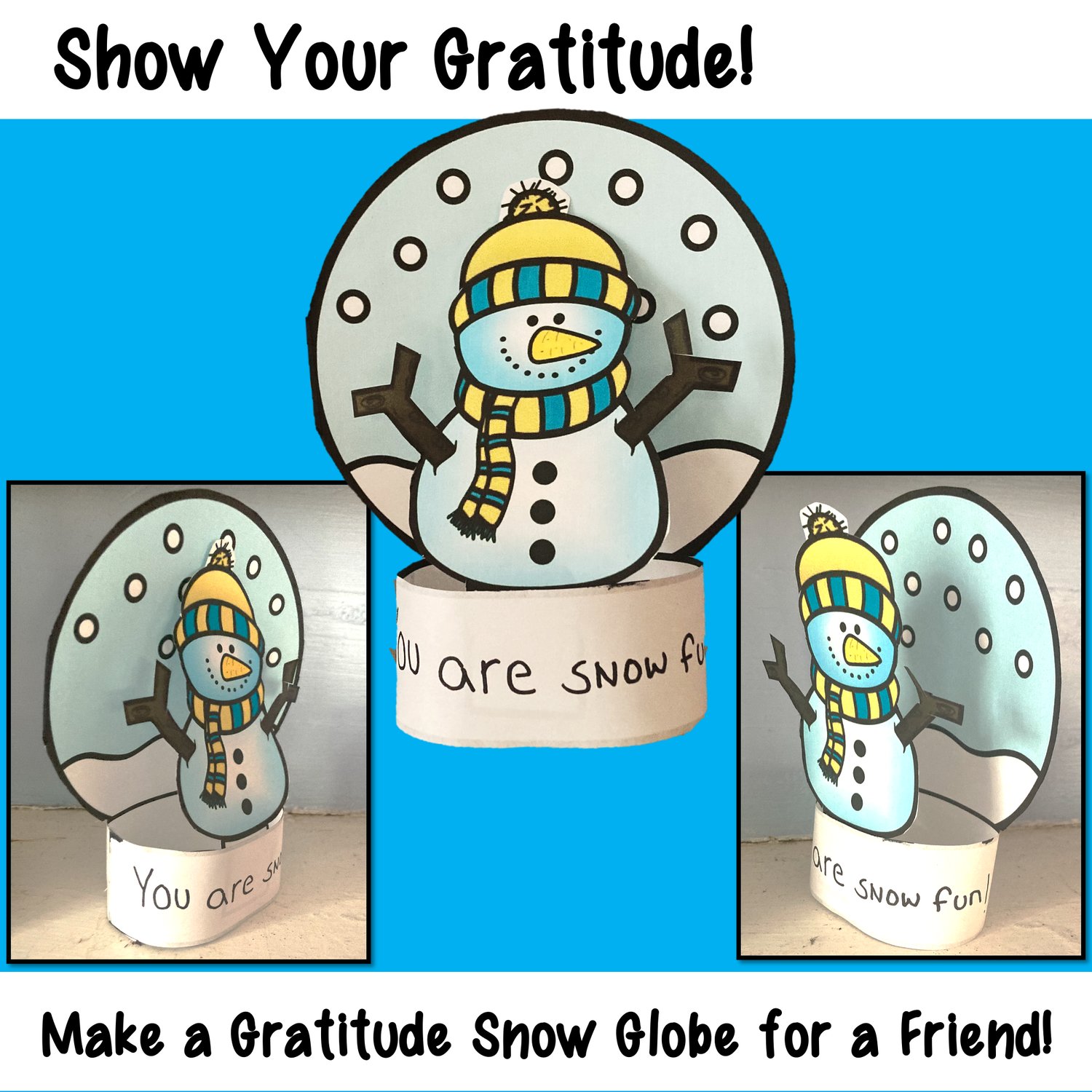 January Snowman Ways to Show Gratitude SEL Winter Snow Globe Craft Activity