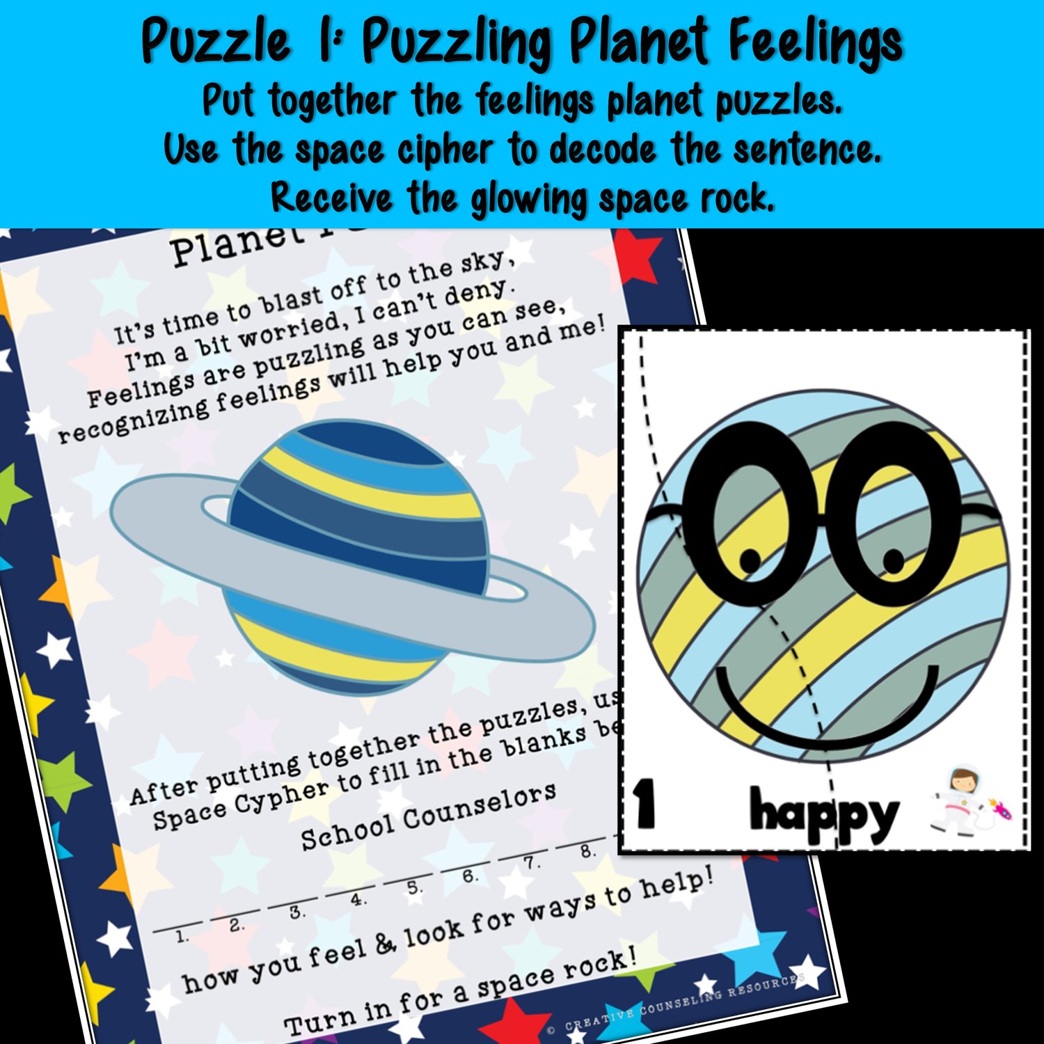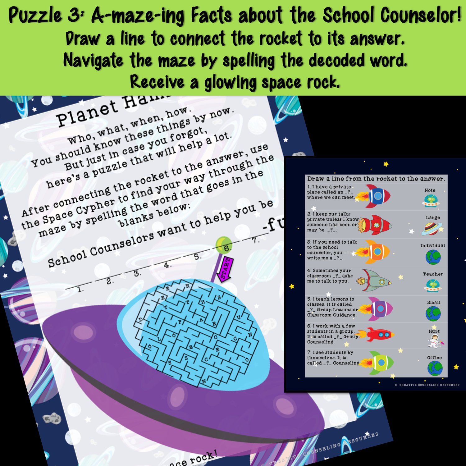 - By solving puzzles across three planets, they'll learn all about the important role of the school counselor and how you can help them.