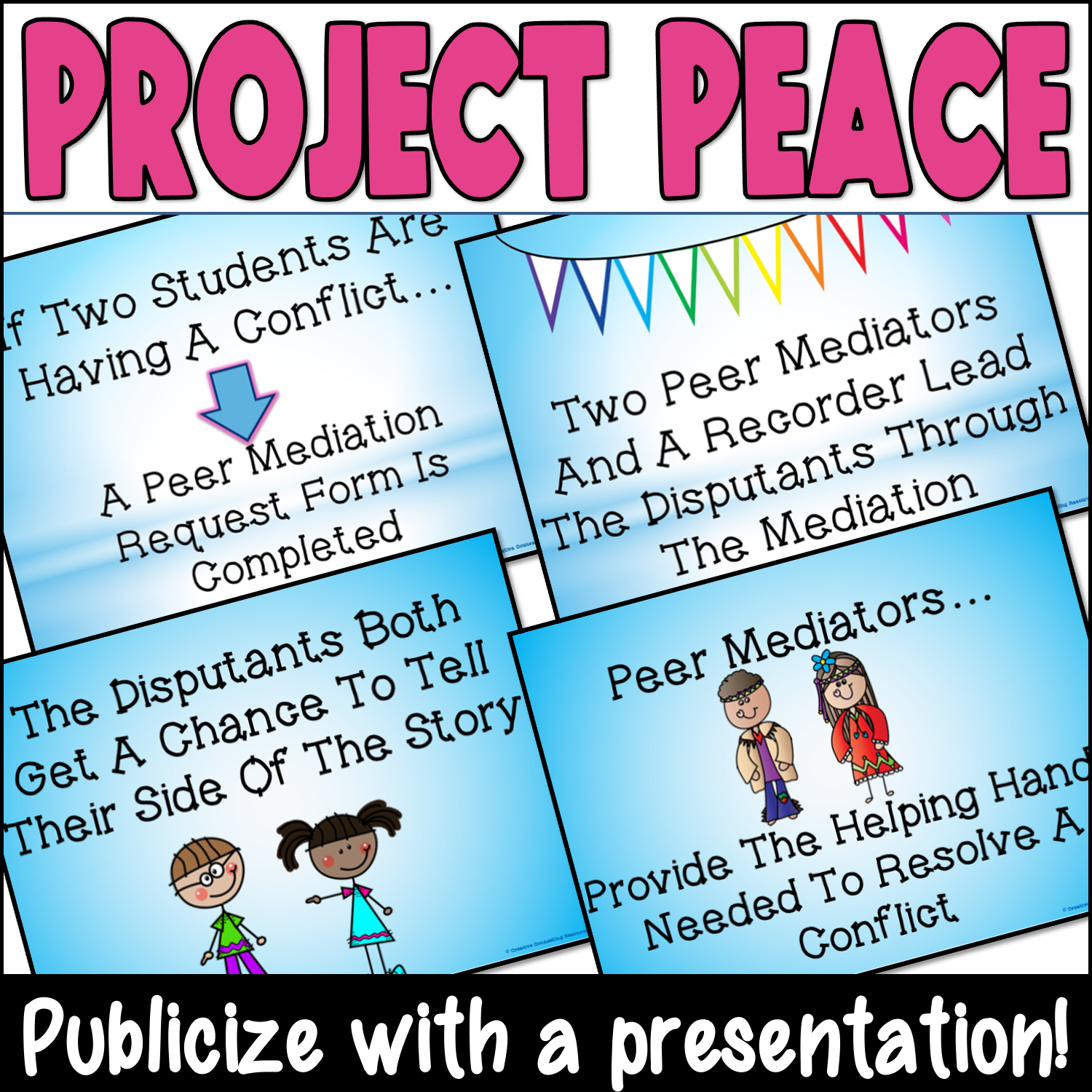 Project PEACE Peer Mediation Conflict Resolution-Publicity Slideshow Packet.