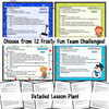 The lesson begins with a colorful, slideshow discussion about the importance of teamwork. Students will understand the characteristics of a successful team and how these characteristics will help them with their future careers. After the discussion, students break into small groups to complete team challenges before the animated timer, a snowball fight, ends. Students learn communication skills, conflict resolution skills, cooperation, and goal-setting while rotating through different game stations! A total of 12 frosty, fun team challenges are provided.