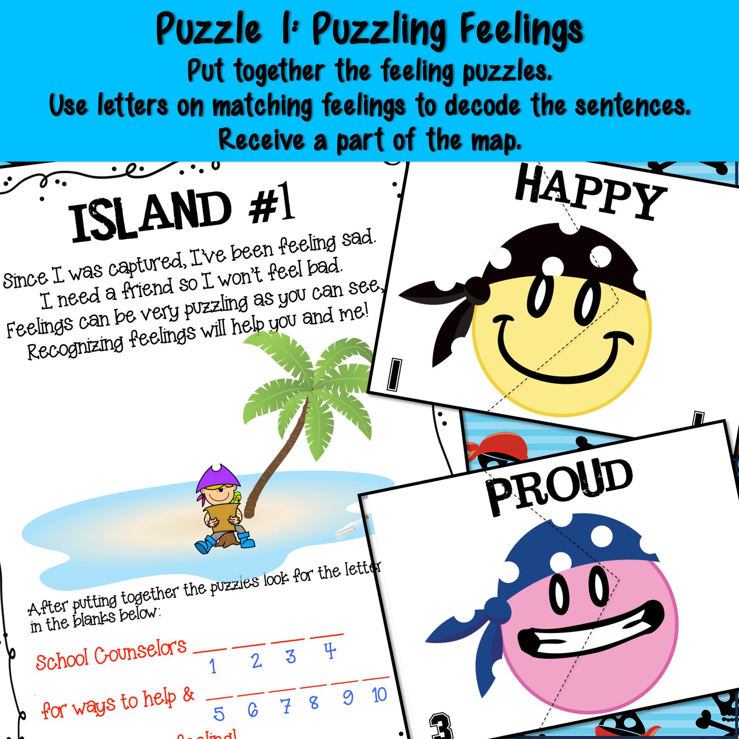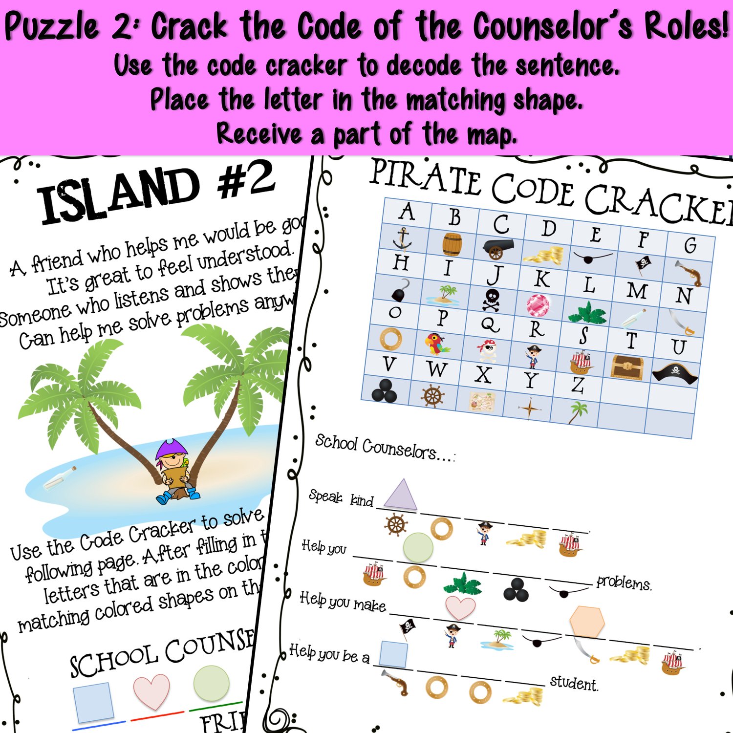 During this swashbuckling adventure, your young learners will work together to unravel clever riddles that reveal the hidden treasures of school counseling. They'll discover how counselors are like trusted pirate crewmates, always ready to lend a hand with any challenge or concern. For each puzzle solved, a piece of map is collected, leading to the grand treasure!