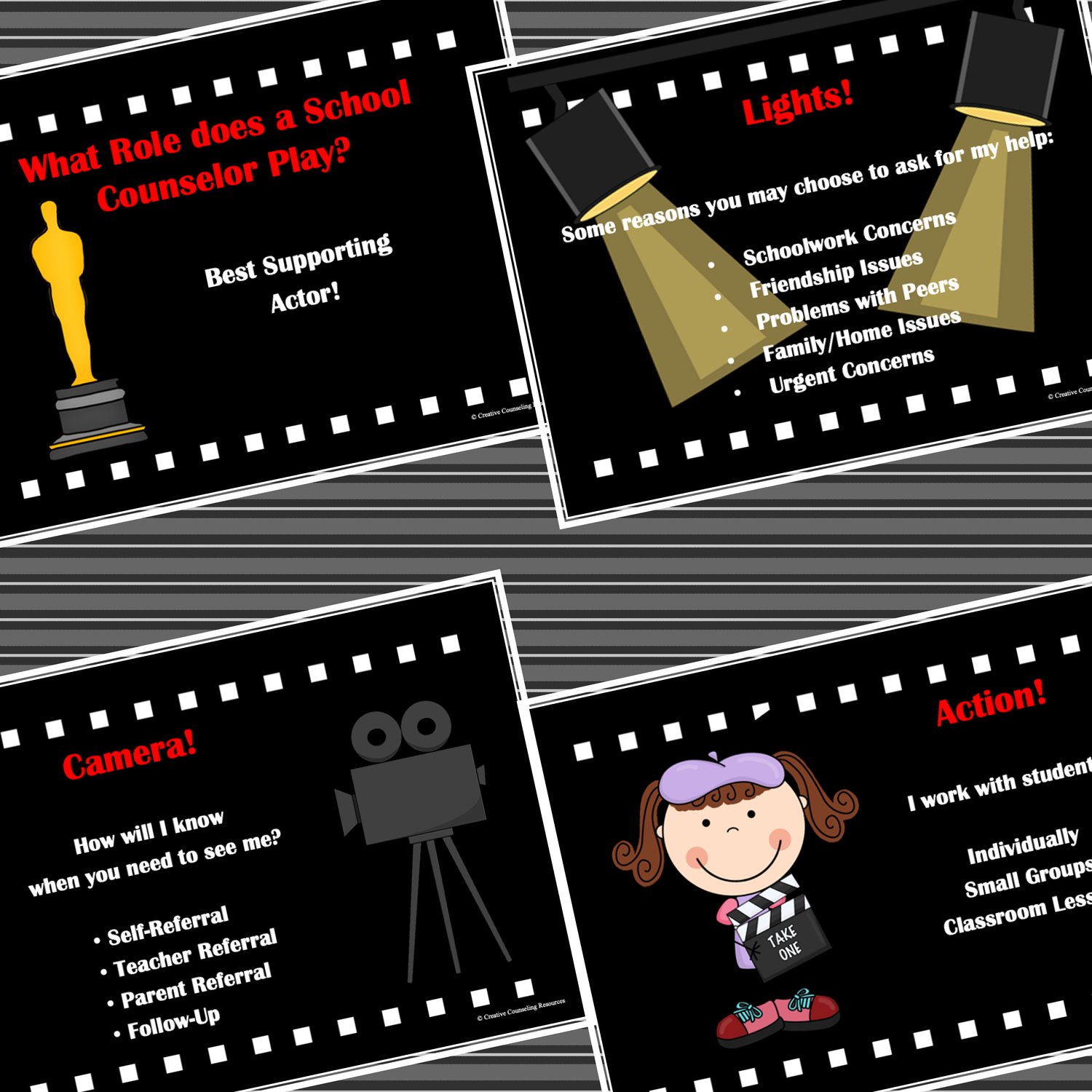 ⭐️ Lights! Camera! Action! Set the stage for a fantastic school year. Students will learn the role of a Hollywood Star - the School Counselor with this back-to-school, Meet the School Counselor Introduction Lesson. Perfect for elementary students, they will have a star-studded time discovering what a school counselor does in this ready-made, Guidance Orientation.