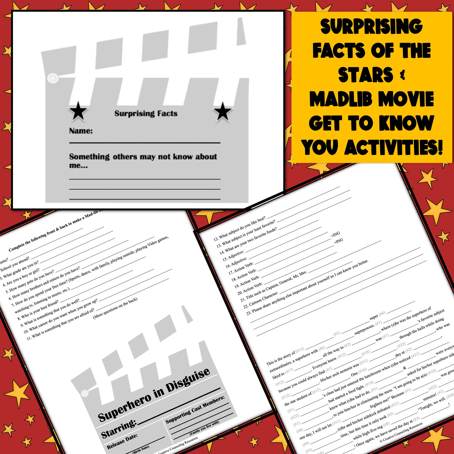 4. Mad-lib Movie Get to Know You Activity Sheets (Editable, 2 pages)